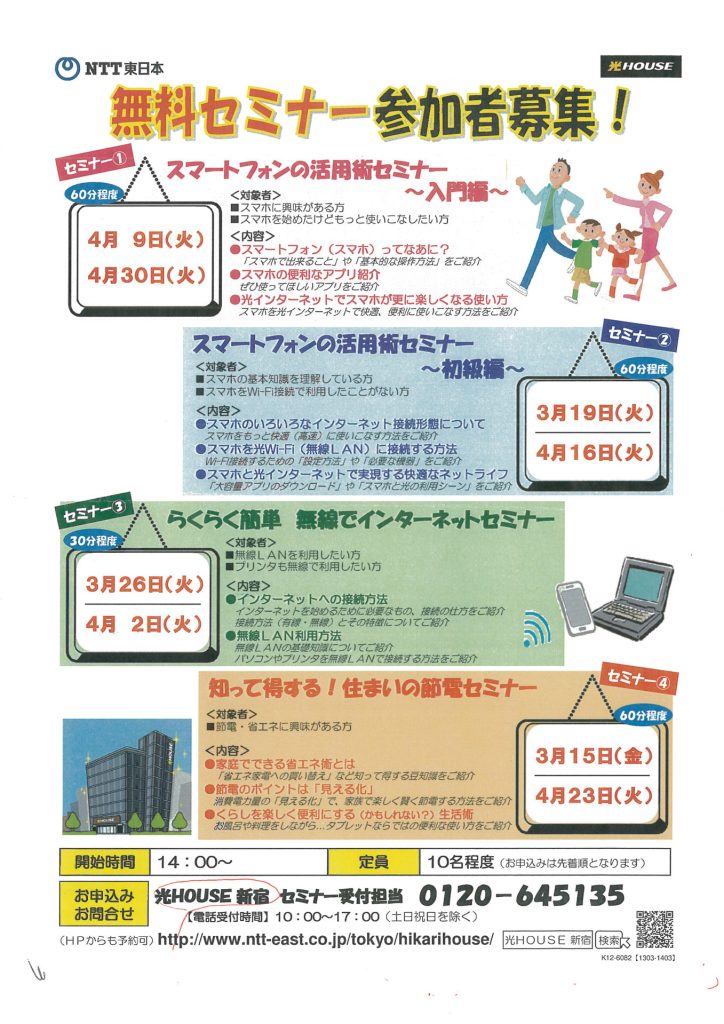 NTT東日本 光HOUSE 新宿の無料セミナーが開催されています。