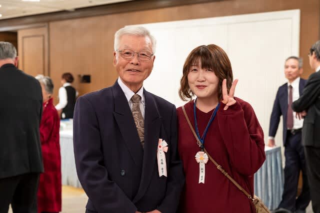 祝賀会で笑って「ハイピース」