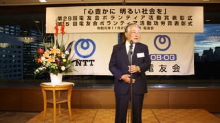 令和6年度ボランティア表彰式「祝賀会」 (髙部会長あいさつ) (NTT三浦特別顧問と髙部会長を囲んで、来賓の皆様) (NTT三浦特別顧問と髙部会長を囲んで四国・北陸の皆様) ...